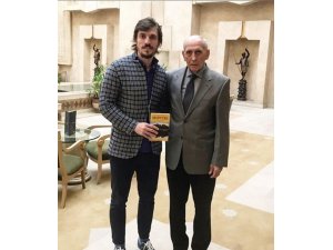 Giresunspor'un forvet oyuncusu Ergin Keleş, Trabzonspor'un efsanesi Özkan Sümer'den 19 yıl önce geri getirme şartıyla aldığı kitabı teslim etti.
