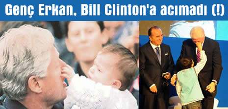 Sinpaş Gayrimenkul'ün 35. yılı dolayısıyla düzenlediği ''Sürdürülebilir Başarı İçin Liderlik'' konulu ''Bosphorus Conference'' kapsamında İstanbul'a gelen Clinton, konferanstaki konuşmasının ardından soruları yanıtlamadan önce platformda Erkan bebeği görünce şaşırdı.