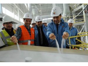Yeni faaliyete geçen Penta 5 Fabrikası ve açık ocak tesislerini inceleyen Eskişehir Valisi Çelik, işletmeler arası kontrollerin yapıldığı sistem odasını, fabrikaların çalışması hakkında kısa bir brifing aldı.