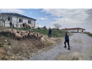 Eskişehir'in Sivrihisar ilçesindeki bir çiftçinin kaybolan 33 küçükbaş hayvanı jandarma tarafından dron desteğiyle bulunarak sahibine teslim edildi.