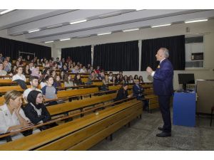 Ayrıca Sağlık, Uygulama ve Araştırma Hastanesinin ünite, birim ve bölümlerini tanıtarak bundan sonra yapılması öngörülen çalışmalardan da bahseden Sırmagül, sunumun ardından öğrencilerden gelen soruları yanıtladı.