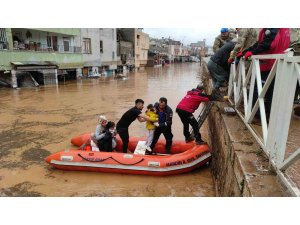 Şanlıurfa'nın Haliliye ilçesinde sel suları nedeniyle evlerinde mahsur kalan vatandaşlar, kurtarma ekipleri tarafından botlarla taşınarak kurtarıldı.