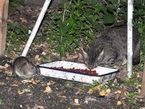 Bafra ilçesinde bir kedi, yemeğini davetsiz misafir fare ile paylaştı. Hülya Yangın Ertekin, beslediği kedi için hazırladığı yemeği bir kabın içerisine koyarak bahçesine bıraktı.