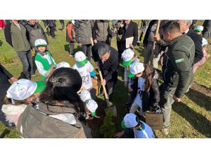 Düzce'de Orman Haftası dolayısıyla düzenlenen etkinlikte fidanlar depremzedeler için toprakla buluşturuldu.