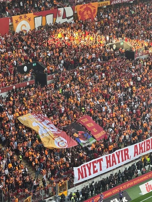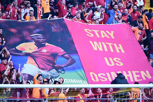 Ayrıca Kale arkasında Osimhen'in Galatasaray'da kalması için de dev pankartlar açıldı.