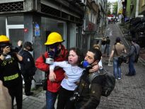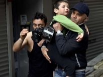 1 Mayıs gösterileri sırasında Biber gazından etkilenen vatandaşlar ve çocuklar evlerinden böyle çıkarıldı.
