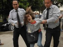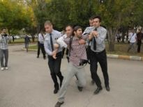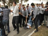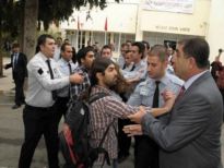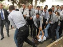 Amfiye alınmayan üniversite öğrencileri ile özel güvenlik görevlileri arasında arbede çıktı.