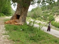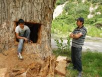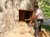 Bolu'nun Göynük ilçesinde defineciler, asırlık kavak ağacını motorlu testere ile keserek ağacın gövdesinde define aradı.