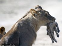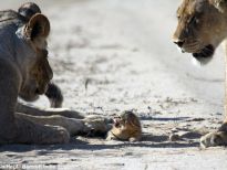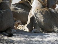 Kendisinden 30 kat büyük vahşi aslanlar arasında kalan yavru kedicik hayatı için mücadele etti ama bir aslanın dişleri arasında hayatı son buldu.
