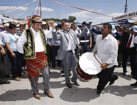 Tarım ve Köyişleri Bakanı Mehdi Eker katıldığı bir festivalde geleneksel kıyafetler içinde halay başı olmuş.