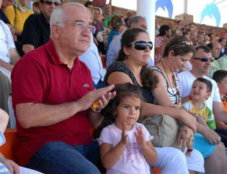 Başbakan Yardımcısı Cemil Çiçek spor kıyafetlerle katıldığı bir etkinlikte torunuyla ilgileniyor.