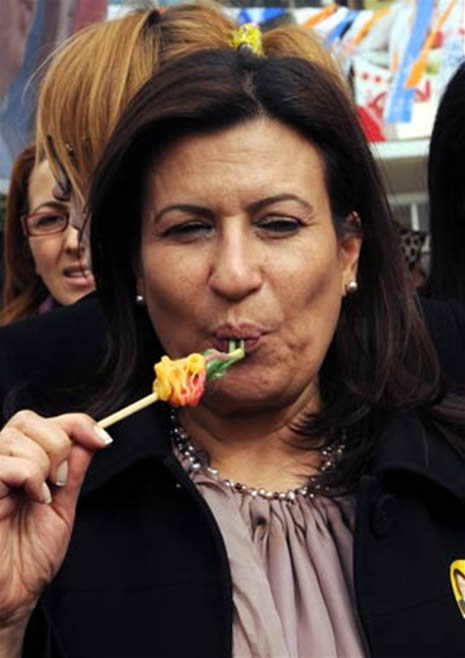 Milli Eğitim Bakanı Nimet Çubukçu katıldığı bir şenlikte macun yerken bayağı zorlanıyor.