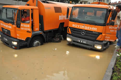 Yaşanan sağnak yağmurlar sonrası Ankara'nın büyük bölümünü su bastı, altyapı iflas etti ve Belediye Başkanı Melih Gökçek, 'Trafiğe çıkmayın' çağısı yaptı.