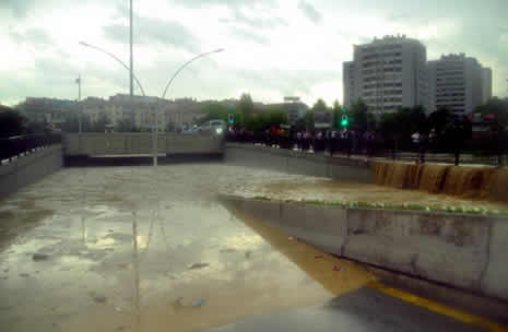Yaşanan sağnak yağmurlar sonrası Ankara'nın büyük bölümünü su bastı, altyapı iflas etti ve Belediye Başkanı Melih Gökçek, 'Trafiğe çıkmayın' çağısı yaptı.
