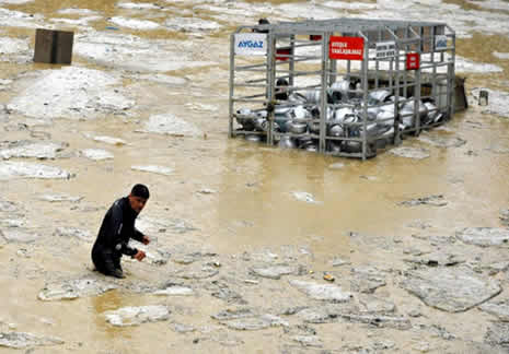 Yaşanan sağnak yağmurlar sonrası Ankara'nın büyük bölümünü su bastı, altyapı iflas etti ve Belediye Başkanı Melih Gökçek, 'Trafiğe çıkmayın' çağısı yaptı.