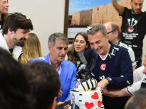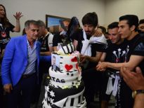 Spor Toto Süper Lig'de Gaziantepspor'u 4-0 yenerek şampiyonluğu garantileyen Beşiktaş kafilesi, şampiyonluk pastası kesti