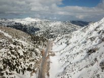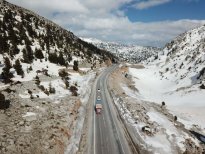 Kar yağışı ile beyaza bürünen Antalya'nın Akseki ilçesindeki Toros Dağları'nda kartpostallık görüntüler oluştu.