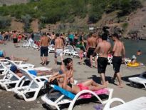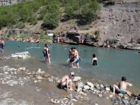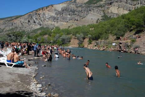 Hava sıcaklığının 41 dereceye ulaştığı Tunceli?de, vatandaşlar ile turistler Pülümür ve Munzur Çayı?nda serinlemeye çalışıyor.