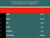 Avrasya Kamuoyu Araştırmaları Merkezi tarafından 7 bölgede yapılan seçim anketi çalışmasına göre AKP ile CHP arasında 3 puanlık bir fark var. AKP 3, CHP 3, BDP 1 BÖLGEDE ÖNDE