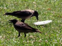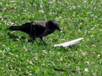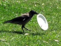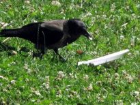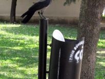 İZMİR Kültürpark’ta yaşayan bir karga, yeşil alana bırakılan strafor tabağı, içinde bırakılan az miktardaki pilavı yedikten sonra, ağzıyla götürüp çöpe attı.