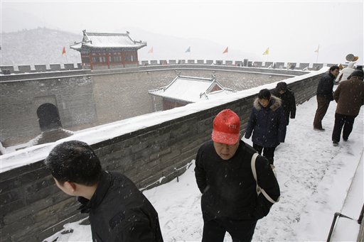 Dünyanın bir çok ülkesini etkileyen kar yağışı her sene olduğu gibi bu sene de muhteşem güzellikleri beyazlar içinde bir başka boyutuyla gözler önüne seriyor. İşte onlardan en büyüğü olan Çin Seddi'nin gelinlik giymiş hali..
