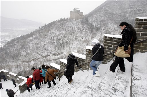 Dünyanın bir çok ülkesini etkileyen kar yağışı her sene olduğu gibi bu sene de muhteşem güzellikleri beyazlar içinde bir başka boyutuyla gözler önüne seriyor. İşte onlardan en büyüğü olan Çin Seddi'nin gelinlik giymiş hali..