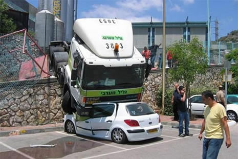 Arabanızı park ettiğiniz yere çok dikkat edin! Gördüğünüz gibi her an her yerden bir kamyon üstüne düşebilir.