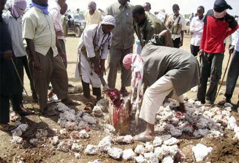 Somali'de suçlu bulunan iki kişi idam edildi. Biri toprağa gömülerek taşlandı, diğeri kurşunlandı.