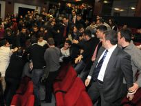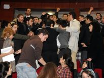 Devlet Bakanı ve Başmüzakereci Egemen Bağış'a üniversite öğrencilerinden protesto.
