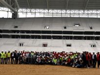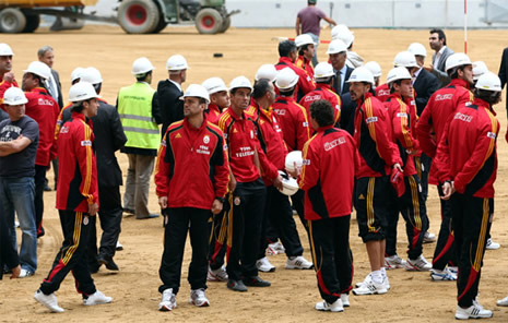 Galatasaray Kulübü Başkanı Adnan Polat, yönetim kurulu üyeleri, futbol takımının teknik heyeti ile sarı-kırmızılı futbolcular, yapımı devam eden Türk Telekom Arena'yı ziyaret ettiler