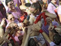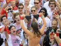 Gençler eğlenceyi abarttı... San Fermin Festivali'nin açılışında 12 bin kişi sokakları doldurdu