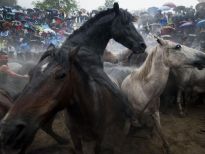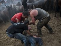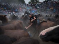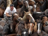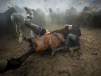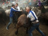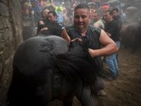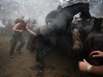 İspanya’nın Galiçya bölgesinde geleneksel olarak temmuz ayının ilk cumartesi günü düzenlenen ‘Rapa Das Bestas’ adlı at festivalinde heyecanlı dakikalar yaşandı.