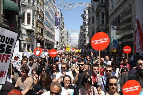İstanbul'un önderliğini yaptığı 39 şehirde birden yapılan "İnternete Dokunma" eyleminde sansüre karşı tepki açıkça ifade edildi. Bir festival havasında yapılan eylemlerde sloganlar ve afişlerle yaratıcılıkların sınırları zorlandı. İşte bugün gazetelerin m