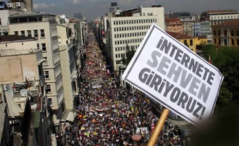 İstanbul'un önderliğini yaptığı 39 şehirde birden yapılan "İnternete Dokunma" eyleminde sansüre karşı tepki açıkça ifade edildi. Bir festival havasında yapılan eylemlerde sloganlar ve afişlerle yaratıcılıkların sınırları zorlandı. İşte bugün gazetelerin m