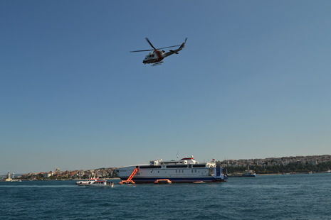 İstanbul ve Çanakkale Boğazlarında muhtemel bir gemi kazasına müdahale edilerek deniz kirliliğini önlemek amacıyla İstanbul Boğazı'nda bugün önemli bir tatbikat düzenlendi.