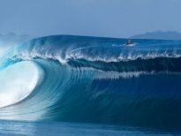 Sean Woolnough bir dalganın tepesinde yavaşça ilerliyor. Namotu Adası, Fiji
