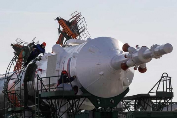 Rusya'nın 14 Mart'ta Kazakistan'daki Boykonur üssünden Uluslararası Uzay İstasyonu'na (ISS) fırlatmayı planladığı Soyuz MS-12 görüntülendi.