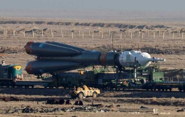 Rusya'nın 14 Mart'ta Kazakistan'daki Boykonur üssünden Uluslararası Uzay İstasyonu'na (ISS) fırlatmayı planladığı Soyuz MS-12 görüntülendi.