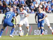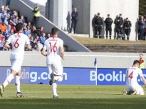 Fransa fatihi A Milli Takımımız, Avrupa Futbol Şampiyonası elemelerindeki 4. maçında deplasmanda İzlanda karşısında. Maçtan ilginç kareler.