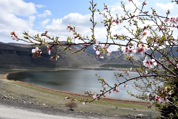 Kapadokya bölgesinde kalp görünümündeki Narlıgöl, ilkbaharın gelmesiyle eşsiz bir güzelliğe büründü.