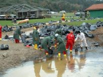 İSTANBUL Kilyos'ta fırtına yüzünden dün karaya oturarak ikiye bölünen Moldova bandıralı kuru yük gemisi Orcun C., etkileri en az 20 yıl sürecek kirliliğe yol açtı. Gemiden denize yaklaşık 90 ton mazot ile 30 ton makine yağı sızdı. Rüzgarın etkili olması y