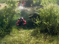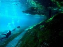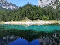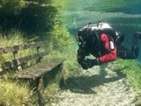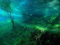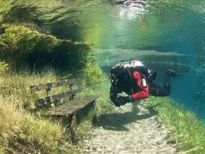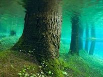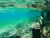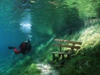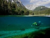 Burası Tragoess, Avusturya'daki Yeşil Göl. Göle dalanlar balıkların yanı sıra, çimenler, bir yol, banklar, köprü ve ağaçlarla kendilerini karada gibi hissediyor.