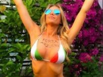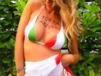 Göğsüne ve kalçasına yazdığı maç tahminleriyle tanınan seksi isim, bu defa tanga şovuyla adından söz ettiriyor.
