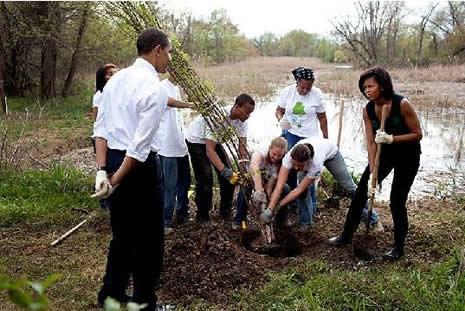 Beyaz Saray fotoğrafçısı Pete Souza'nın karelerinde ABD lideri Barack Obama boya yapıyor, ağaç dikiyor, basket oynuyor.