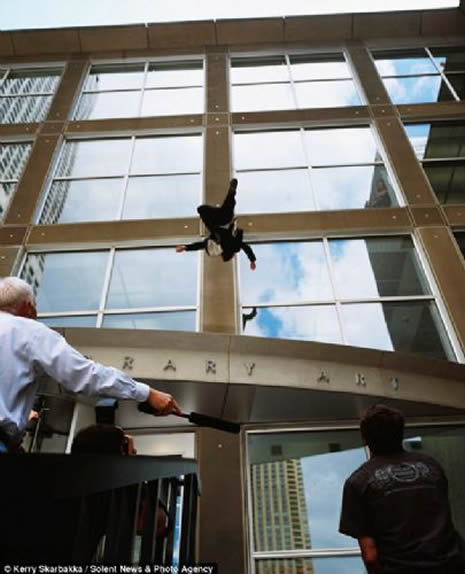 Fotoğrafçı Kerry Skarbakka ölümden önceki saniyenin fotoğrafını çekmek istemiş. Tabii bunun için ölecek insanları tahmin etmek ya da cinayete teşebbüs etmek gibi bir yöntem izlememiş. O anı kendi canlandırmış.
