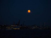 Ay'ın tutulma öncesinde doğarken kızıla bürünmüş hali eşsiz manzaralar oluşturdu.