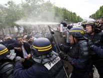 Fransa'nın başkenti Paris'te dün düzenlenen gösteride, İsrail'in Gazze'ye yardım götüren gemilere saldırısı protesto edildi. Taşkınlık yapan bazı göstericileri polisin müdahalesi hayli sert oldu ve ortaya Filisintin'i andıran manzaralar çıktı