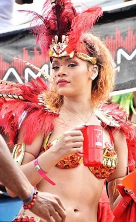 Seksi şarkıcı Rihanna, ülkesi Barbados'un ünlü Kadooment Day kutlamalarında kendinden geçti.