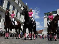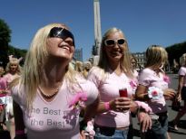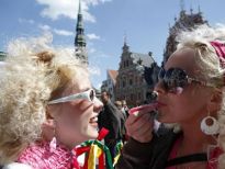 Letonya'nın başkenti Riga'da 500'den fazla sarışın, kocaman gözlükler ve pahalı çantaları dahil bütün aksesuarlarını takıp takıştırdı, kanişlerini de yanlarına alarak 'Sarışın Festivali'nde güzel hava ve eğlencenin tadını çıkardı.
