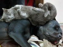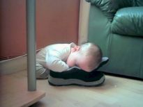 Yorgunluktan bitap düşmüş sevimli bebek ve hayvan görüntülerinden kareler.